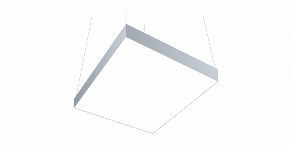 Светодиодный светильник в виде квадрата LiNE-PRO мощностью 2320 Вт и 1600 мм изготовлен из алюминиевого основания, с установленными на него светодиодными модулями. Возможна различная цветовая температура - 3000К, 4000К, 5000К, 6000К. Боковины могут быть изготовлены из плотного ПВХ различного цвета, на выбор или светотехнического акрила и выполнять функцию рассеивателя. Блок питания внутри корпуса светильника. Монтаж на тросовых подвесах или непосредственно к потолку или стене.