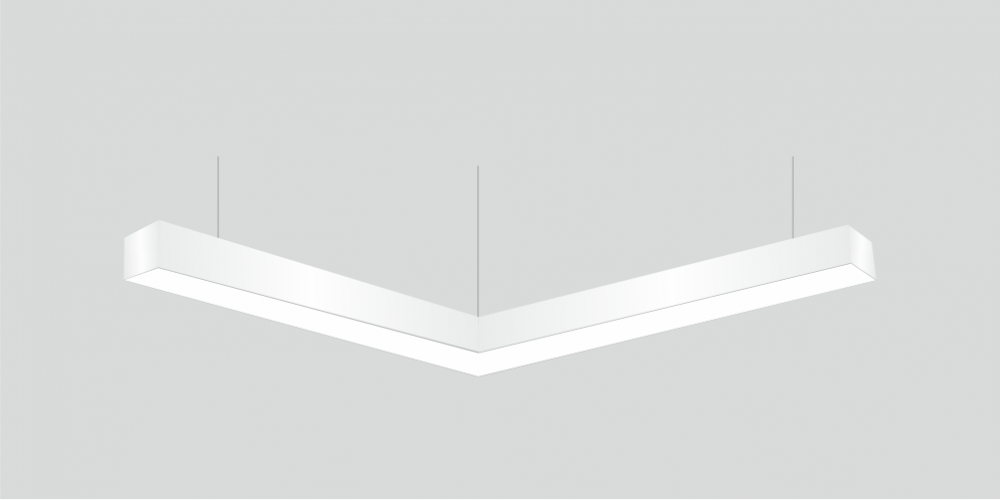 Светодиодный Угловой светильник LiNE-Pro 120гр. 750х750mm 30W 4000K белый предназначен для накладного или подвесного монтажа на тросовые подвесы. Изготовлен из сплошного сварного алюминиевого профиля в виде угла под 120 градусов. Высота установки светильника регулируется подвесом с цанговым тросовым зажимом и может варьироваться от 0,05 метра до 4 метров от основного потолка. Светильник имеет равномерную засветку по всей площади рассеивателя. Источник питания находится внутри корпуса. Торцевые заглушки входят в комплект. Возможно изготовление светильника с магистральной проводкой для соединения нескольких светильников в сплошную конструкцию.