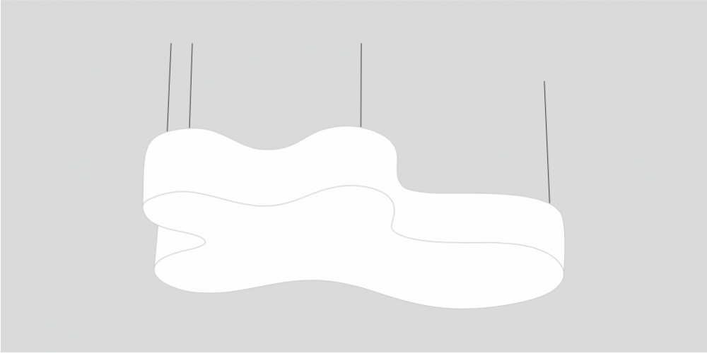 Светодиодный светильник в виде облака LiNE-PRO мощностью 100 Вт 900х600 мм изготовлен из алюминиевого основания, с установленными на него светодиодными модулями. Возможна различная цветовая температура - 3000К, 4000К, 5000К, 6000К. Боковины изготовлены из светотехнического акрила и выполняют функцию рассеивателя. Блок питания внутри корпуса светильника. Монтаж на тросовых подвесах или непосредственно к потолку или стене.