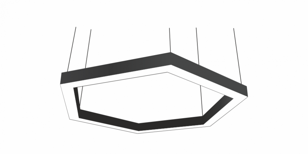 Светодиодный Шестиугольный светильник LiNE-Pro 6х500mm 110W 4000K черный предназначен для накладного или подвесного монтажа на тросовые подвесы. Изготовлен из сплошного сварного алюминиевого профиля в виде шестиугольника. Высота установки светильника регулируется подвесом с цанговым тросовым зажимом и может варьироваться от 0,05 метра до 4 метров от основного потолка. Шестиугольный линейный светильник имеет равномерную засветку по всей площади рассеивателя. Источник питания находится внутри корпуса.