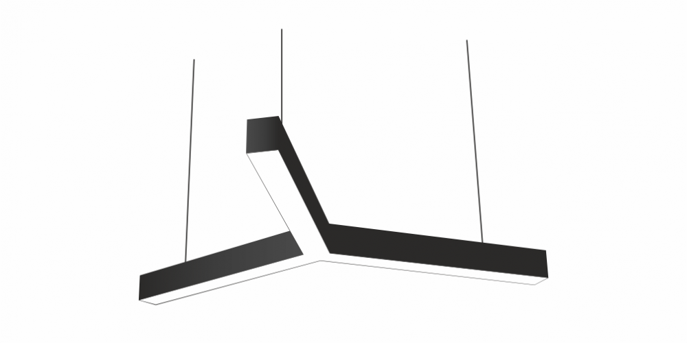 Светодиодный Лучевой светильник LiNE-Pro 3х500mm 30W 5000K черный предназначен для накладного или подвесного монтажа на тросовые подвесы. Изготовлен из сплошного сварного алюминиевого профиля в виде буквы «Y». Высота установки светильника регулируется подвесом с цанговым тросовым зажимом и может варьироваться от 0,05 метра до 4 метров от основного потолка. Светильник имеет равномерную засветку по всей площади рассеивателя. Источник питания находится внутри корпуса. Торцевые заглушки входят в комплект. Возможно изготовление светильника с магистральной проводкой для соединения нескольких светильников в сплошную конструкцию.