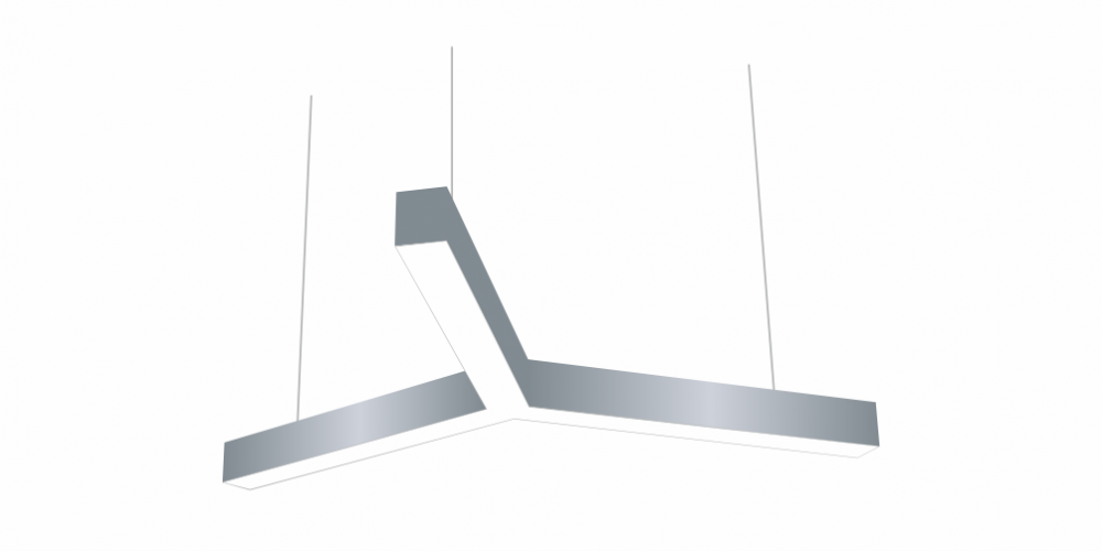 Светодиодный Лучевой светильник LiNE-Pro 3х500mm 30W 6000K серый предназначен для накладного или подвесного монтажа на тросовые подвесы. Изготовлен из сплошного сварного алюминиевого профиля в виде буквы «Y». Высота установки светильника регулируется подвесом с цанговым тросовым зажимом и может варьироваться от 0,05 метра до 4 метров от основного потолка. Светильник имеет равномерную засветку по всей площади рассеивателя. Источник питания находится внутри корпуса. Торцевые заглушки входят в комплект. Возможно изготовление светильника с магистральной проводкой для соединения нескольких светильников в сплошную конструкцию.
