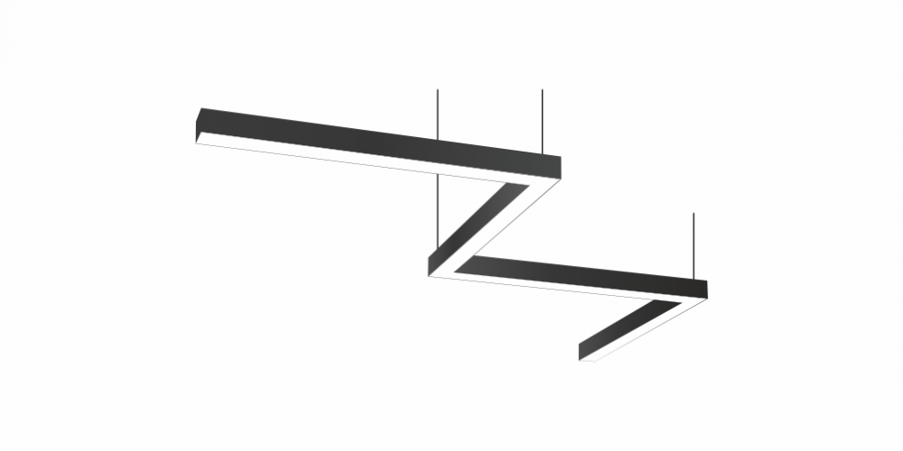 Фигурный светодиодный Светильник Зигзаг LiNE-Pro 4х500mm 40W 3000K черный предназначен для накладного или подвесного монтажа на тросовые подвесы. Изготовлен из сплошного сварного алюминиевого профиля в виде зигзага. Высота установки светильника регулируется подвесом с цанговым тросовым зажимом и может варьироваться от 0,05 метра до 4 метров от основного потолка. Светильник Зигзаг имеет равномерную засветку по всей площади рассеивателя. Источник питания находится внутри корпуса. Торцевые заглушки входят в комплект. Возможно изготовление светильника с магистральной проводкой для соединения нескольких светильников в сплошную конструкцию