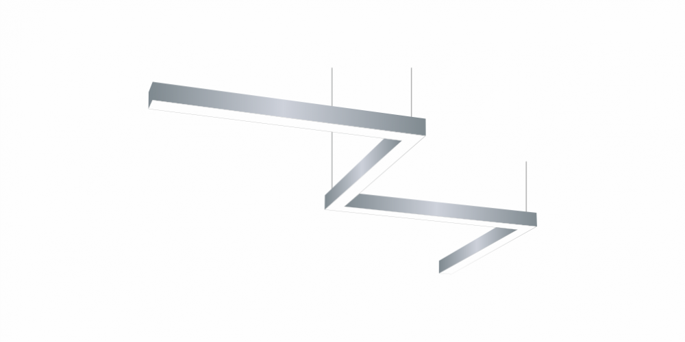 Фигурный светодиодный Светильник Зигзаг LiNE-Pro 4х500mm 80W 6000K серый предназначен для накладного или подвесного монтажа на тросовые подвесы. Изготовлен из сплошного сварного алюминиевого профиля в виде зигзага. Высота установки светильника регулируется подвесом с цанговым тросовым зажимом и может варьироваться от 0,05 метра до 4 метров от основного потолка. Светильник Зигзаг имеет равномерную засветку по всей площади рассеивателя. Источник питания находится внутри корпуса. Торцевые заглушки входят в комплект. Возможно изготовление светильника с магистральной проводкой для соединения нескольких светильников в сплошную конструкцию