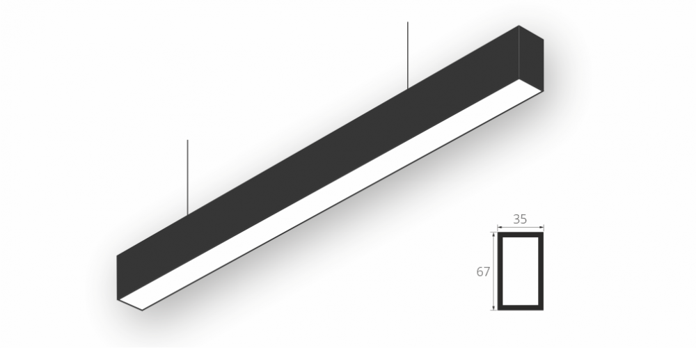 Линейный светодиодный Подвесной светильник LiNE-Pro 67x35 1250mm 50W 5000K Черный предназначен для подвесного монтажа на тросовые подвесы. Изготовлен из алюминиевого профиля длиной 1250 мм, мощностью 50 Вт c цветовой температурой 5000 K, цвет корпуса Черный. Высота установки светильника регулируется подвесом с цанговым тросовым зажимом и может варьироваться от 0,05 метра до 4 метров от основного потолка. Линейный светильник может использоваться для реечных потолков. Светильник имеет равномерную засветку по всей площади рассеивателя. Источник питания находится внутри корпуса. Торцевые заглушки входят в комплект.