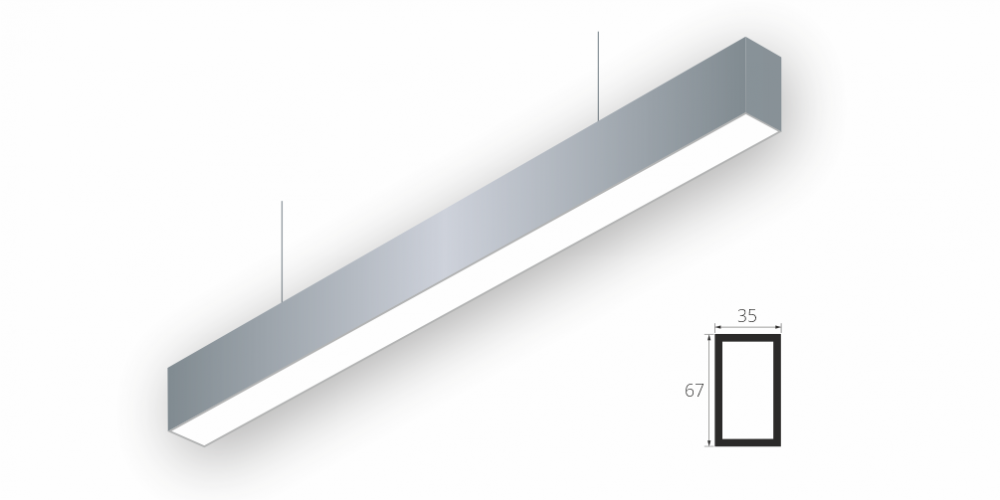 Линейный светодиодный Подвесной светильник LiNE-Pro 67x35 500mm 25W 6000K Серый предназначен для подвесного монтажа на тросовые подвесы. Изготовлен из алюминиевого профиля длиной 500 мм, мощностью 25 Вт c цветовой температурой 6000 K, цвет корпуса Серый. Высота установки светильника регулируется подвесом с цанговым тросовым зажимом и может варьироваться от 0,05 метра до 4 метров от основного потолка. Линейный светильник может использоваться для реечных потолков. Светильник имеет равномерную засветку по всей площади рассеивателя. Источник питания находится внутри корпуса. Торцевые заглушки входят в комплект.