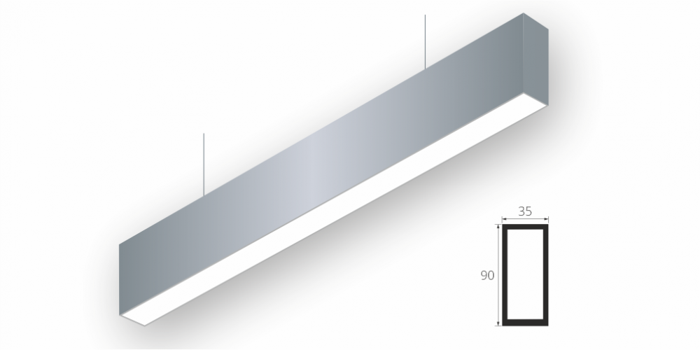 Линейный светодиодный Подвесной светильник LiNE-Pro 90x35 2000mm 40W 6000K Серый предназначен для подвесного монтажа на тросовые подвесы. Изготовлен из алюминиевого профиля длиной 2000 мм, мощностью 40 Вт c цветовой температурой 6000 K, цвет корпуса Серый. Высота установки светильника регулируется подвесом с цанговым тросовым зажимом и может варьироваться от 0,05 метра до 4 метров от основного потолка. Линейный светильник может использоваться для реечных потолков. Светильник имеет равномерную засветку по всей площади рассеивателя. Источник питания находится внутри корпуса. Торцевые заглушки входят в комплект.