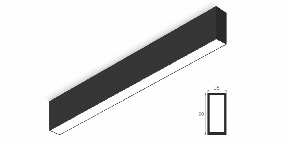 Линейный модульный светодиодный Накладной светильник LiNE-Pro 90x35 500mm 15W 6000K Черный предназначен для накладного монтажа на ровную поверхность. Изготовлен из алюминиевого профиля длиной 500 мм, мощностью 15 Вт c цветовой температурой 6000 K, цвет корпуса Черный. Светильники соединяются в сплошную линию с помощью комплекта линейного соединения и сплошной магистральной проводки. Светильник имеет равномерную засветку по всей площади рассеивателя. Источник питания находится внутри корпуса.
